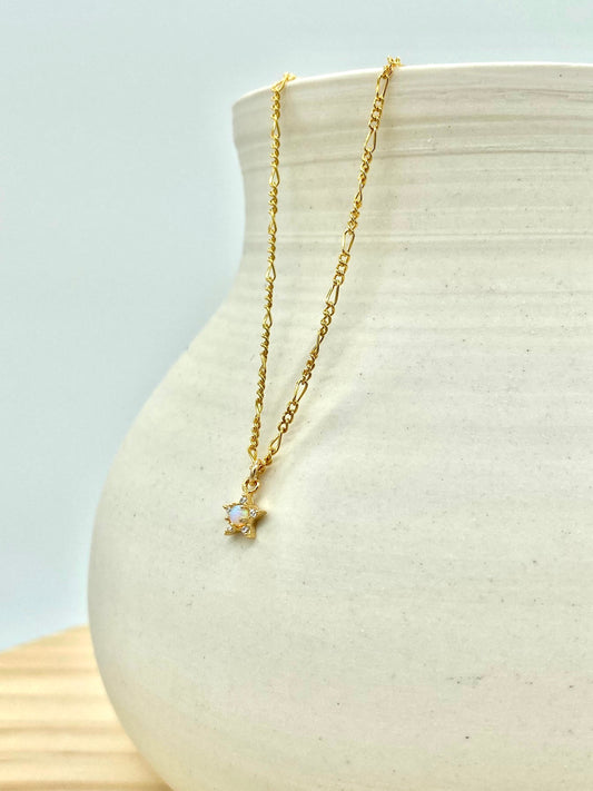 Figaro Opal CZ Star Necklace (16”, 18”)
