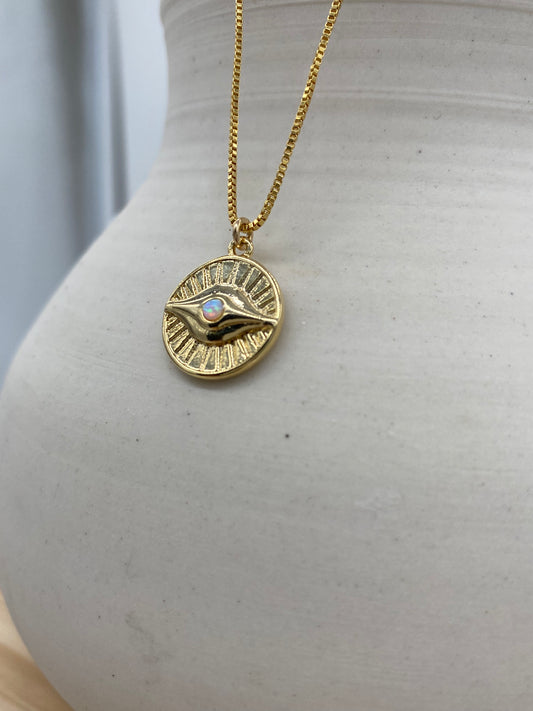 Opal Evil Eye Coin Necklace (16”, 18”)
