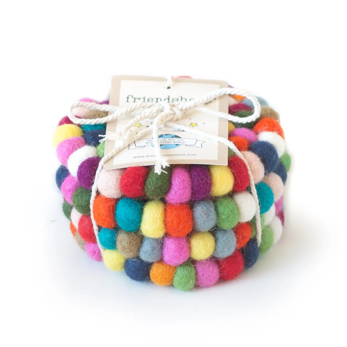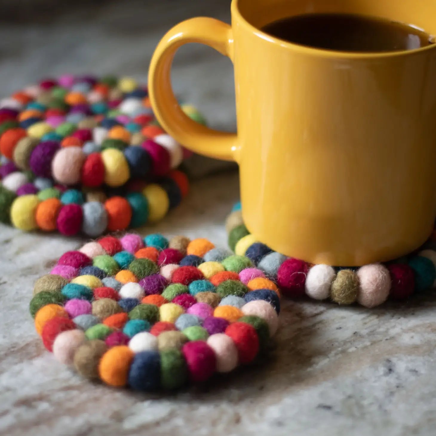 Handmade, absorbent, and plastic free! These colorful Boho eco coasters and trivet are perfect to protect your furniture while adding a cozy touch to your home. Great for both kids and adults: fun, colorful, unbreakable and forever reusable! HINT: give a twist to the eco coasters by adding essential oils to them, they make great fresheners! Hand made with 100% cruelty free New Zealand wool and colored with azo-free eco-friendly dyes. Hand felted with just warm water and vegetable soap and then sun dried. No toxic dyes or fragrances added, never.