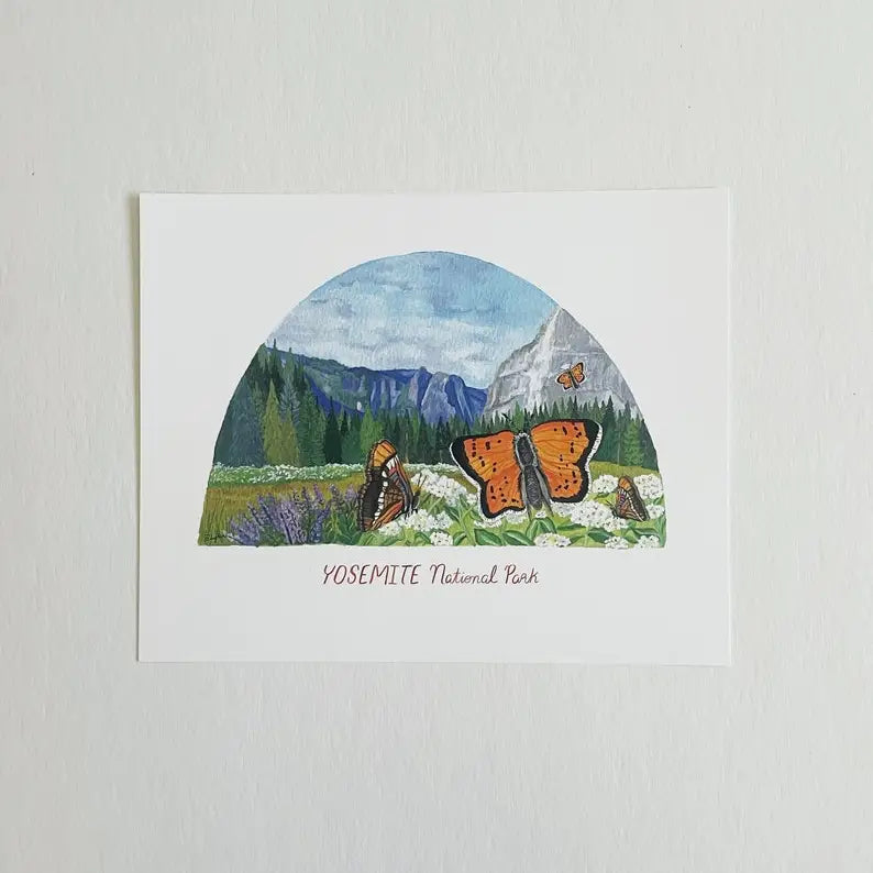 Yosemite National Park | Alpine Butterfly - Size: 8x10 - Arrives in a clear cello bag with chipboard backing - Printed full color on matte card stock - Frame is not included - Made in America - gouache paint