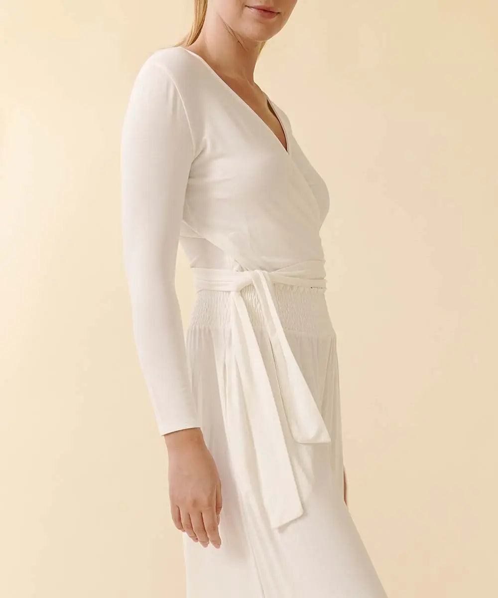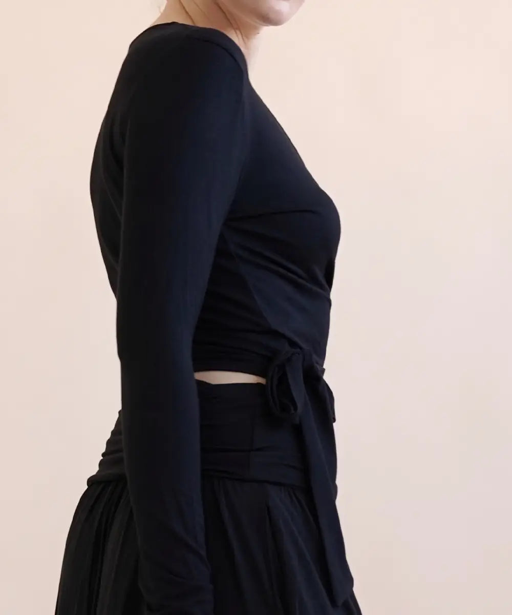 Bamboo Long Sleeve Wrap Top (Black, Ivory)