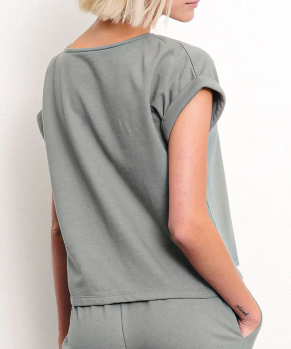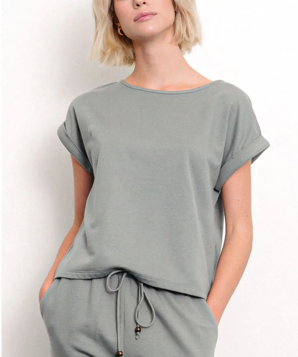 Hemp & Organic Cotton Heavyweight Brushed Top (Ivory, Sage)