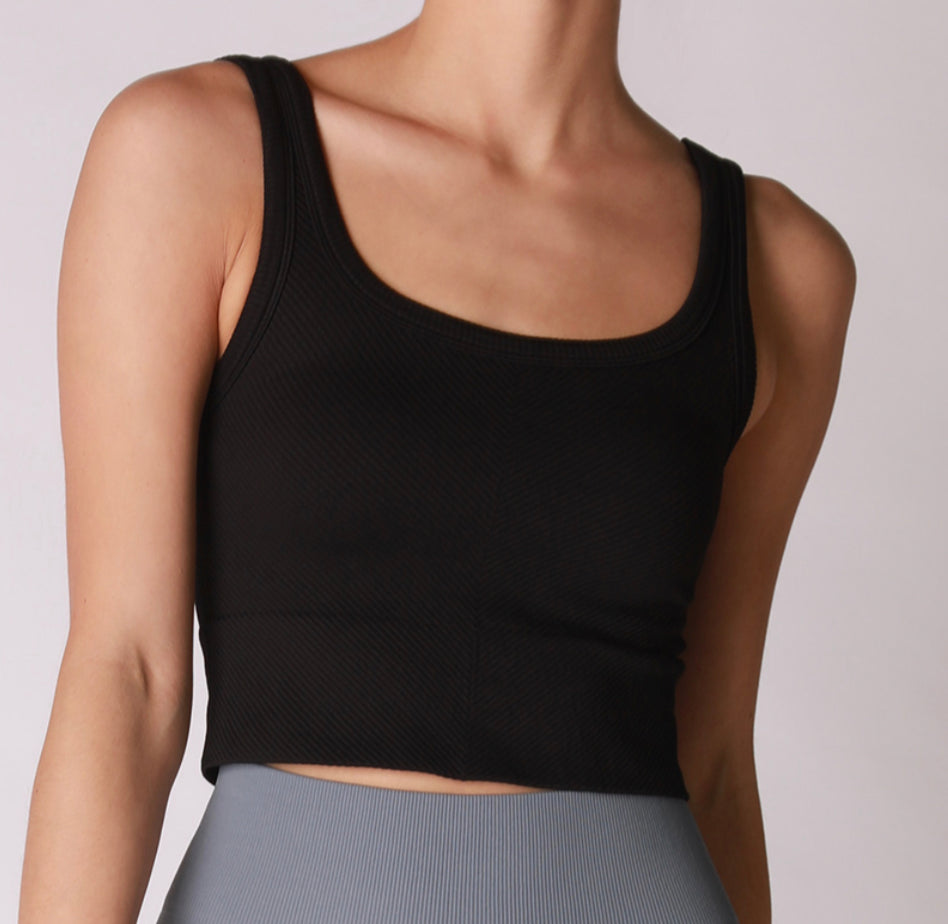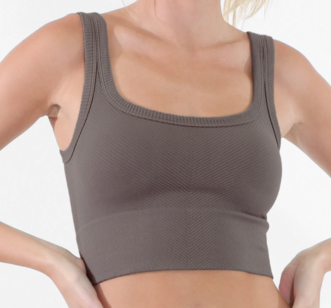Seamless Chevron Scoop Neck Crop Tank (Mahogany, Olive, Pewter, Black, White)