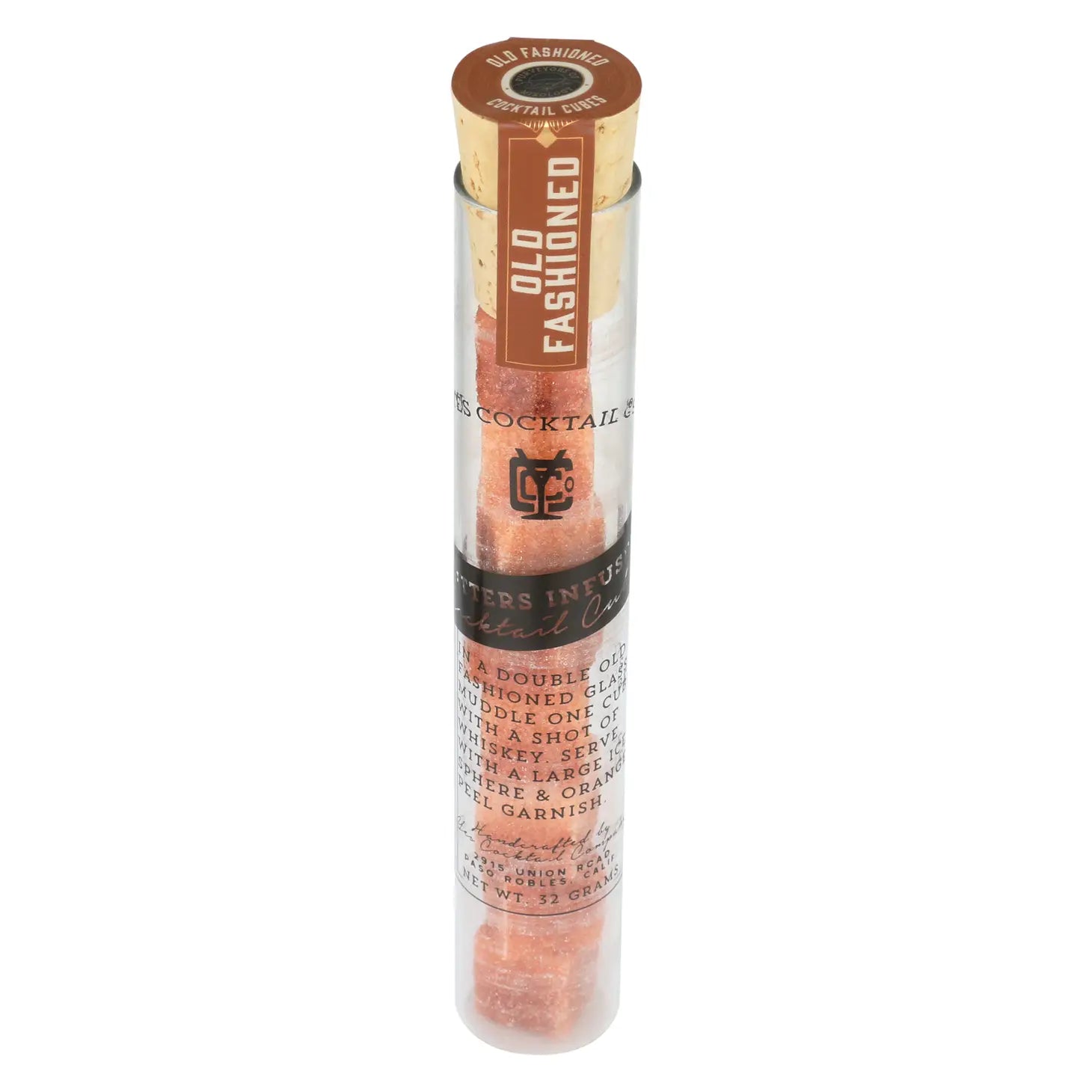 Craft the perfect Old Fashioned every time with these organic cane sugar cubes infused with essential oils and bitters. It's the exact ratio for the classic Old Fashioned Cocktail, conveniently crafted into a single cube. For mocktails, simply muddle with a splash of water and top up with Sparkling Water! Try adding to coffee and tea, too! Ingredients: Cane Sugar, Bitters, Orange Oil. Nutrition Facts: Serving Size 1 cube (4g), Servings per container 8. Amount per serving calories 15, Total Fat 0g (0%DV), Sodium 0mg (0%DV), Total carbs 4 g (1%DV), Protein 0g (0%DV)