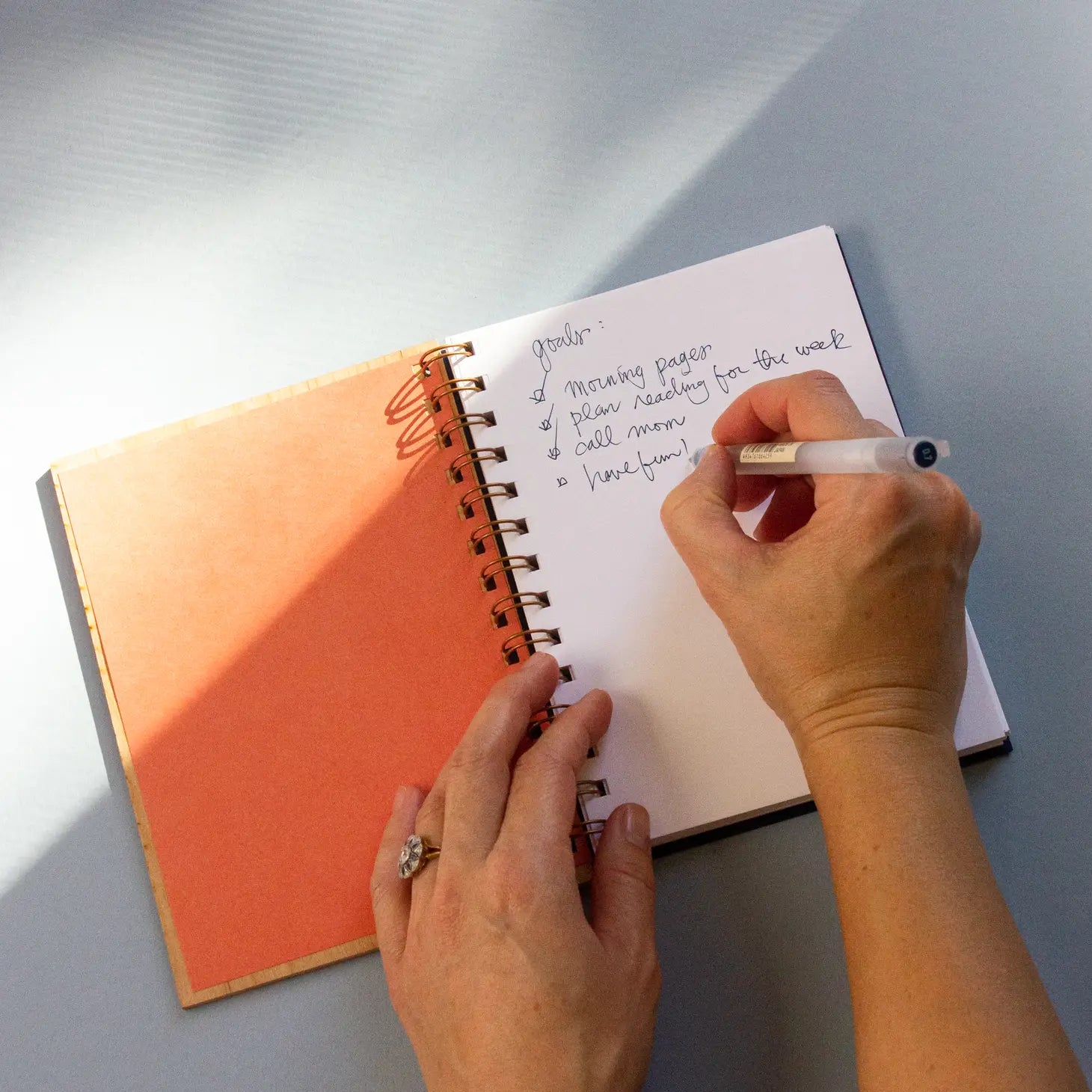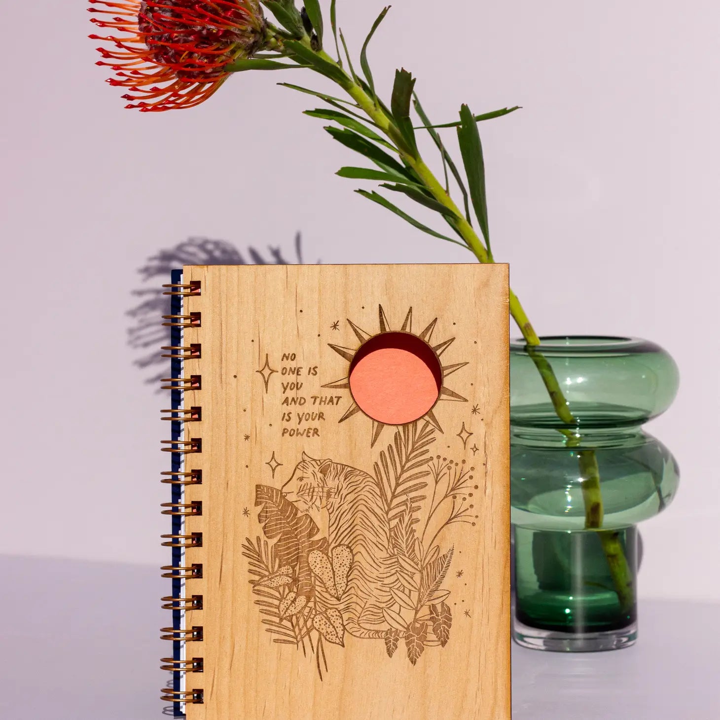 Your ideas will never run dry when you are inspired by our Desert Garden Journal. The desert contains a great mix of plants that have adapted and thrived, so fill the pages of your journal with a mix of notes, to-dos, and dreams. Thoughts and notes, sketches and doodles: in the high tech, multi-screen digital age, there is still nothing more satisfying than putting point to paper. This handmade journal elevates gifting and inspires self-expression in poetry and verse. Product Details: • 5.25" x 7.25" journal • 160 blank, unlined pages (80 sheets) • Front cover is laser cut certified sustainable American wood • Back cover is navy leatherette with gold foil logo • Made in Los Angeles, California