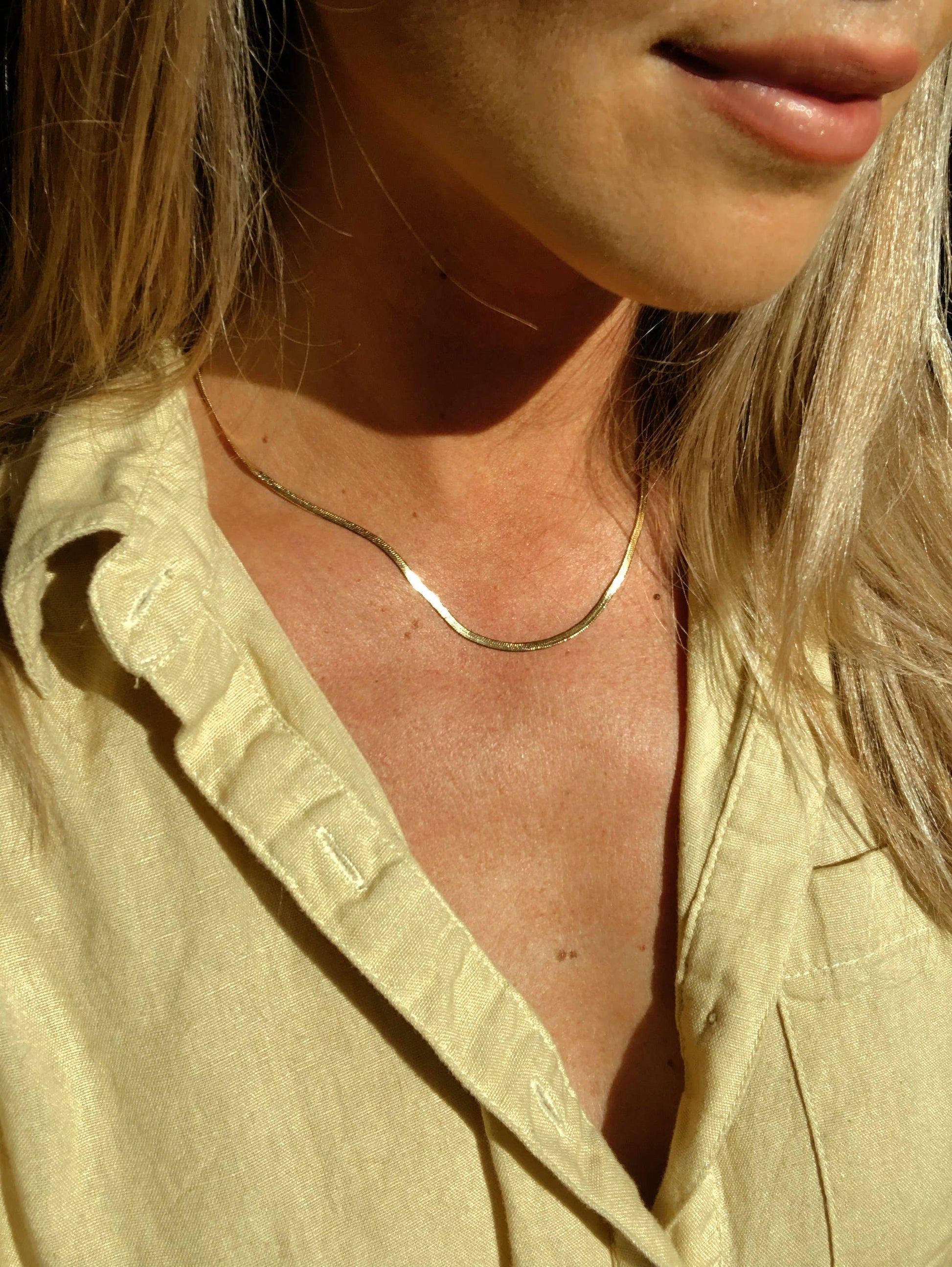 This 18k Gold Filled Herringbone Chain is the perfect addition to your collection. We have tested this beautiful piece's durability by wearing it 24/7 in the water and working out with no signs of wear and tear. The necklace still looks perfect! 2.4mm width chain, 17.5 inch long. Lead free, nickel free