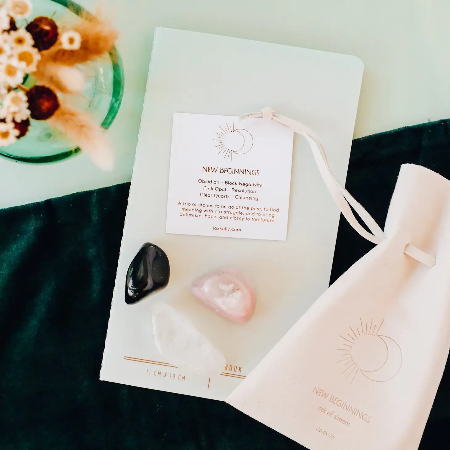 Block negativity with Obsidian, find resolution with Pink Opal, cleanse and amplify your energy with Clear Quartz. Carry these stones with you or place them in a special space to manifest new beginnings. All crystals are natural. Due to the inherent nature of the stones, colors and variations will occur. Photos are for demonstrative purposes and may or may not feature the crystals you receive. 3 tumbled gemstones Genuine polished crystal stone Suede-feel drawstring bag