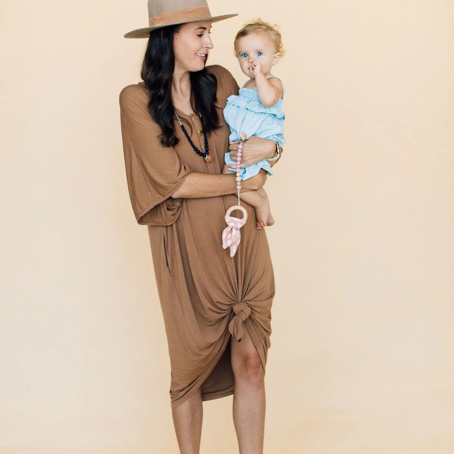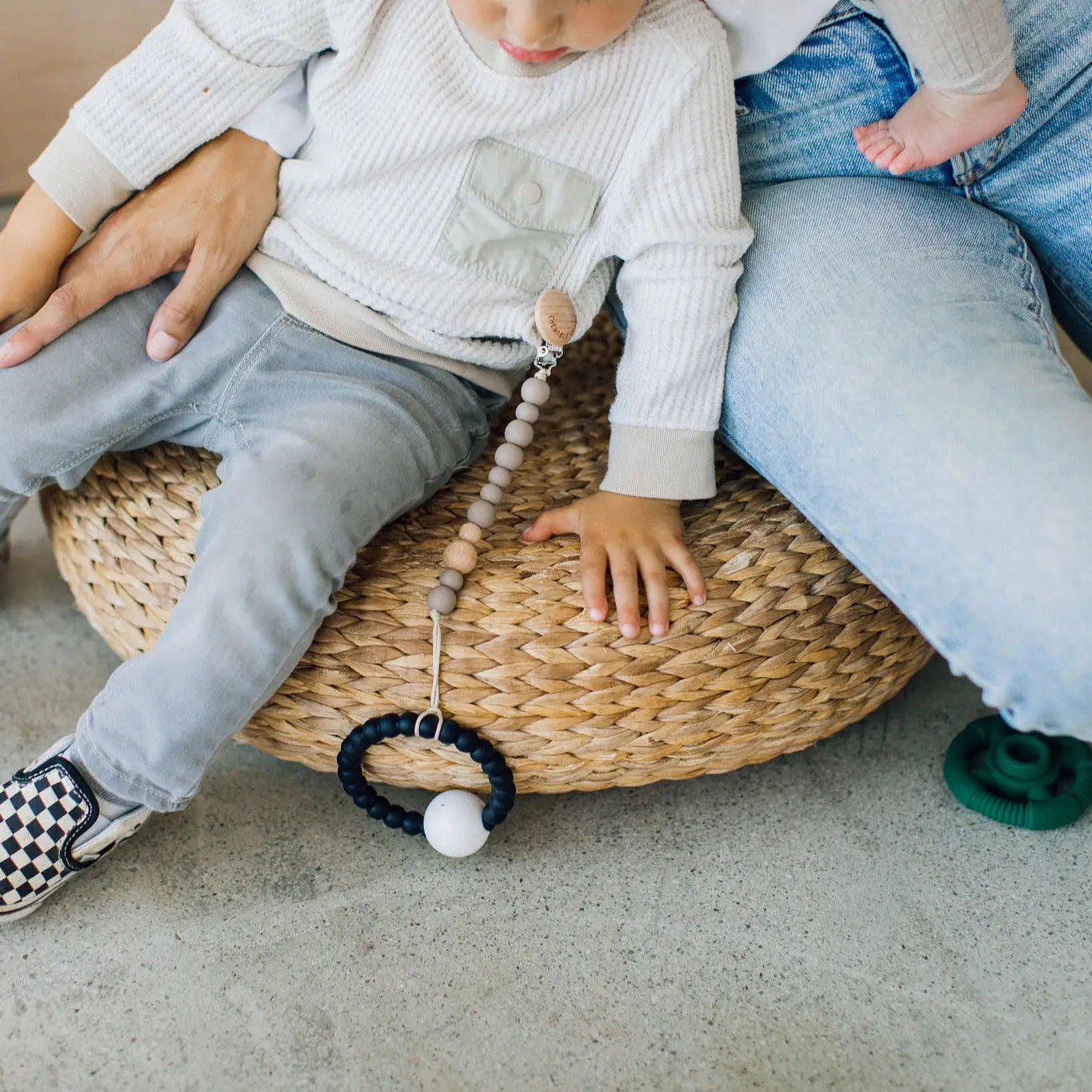 We are a mom owned + operated company that was founded in 2014 in California. Majority of our products are made by moms, and all our employees are parents that have been through the teething trenches themselves. All our products are made with food grade silicone and beech wood and certified to meet USA FDA and Consumer Product Safety Commission Standards. Our style is neutral + simple, from the product design down to our packaging. We hope you feel just as fashionable as you feel practical using our products. Sprouting teeth is a rite of passage and it can be a very stressful period for both baby and parents alike. While there is no magic cure for teething pain and discomfort it's our hope that having some Chewable Charm necklaces and teethers will make the experience a little more pleasant for everyone.