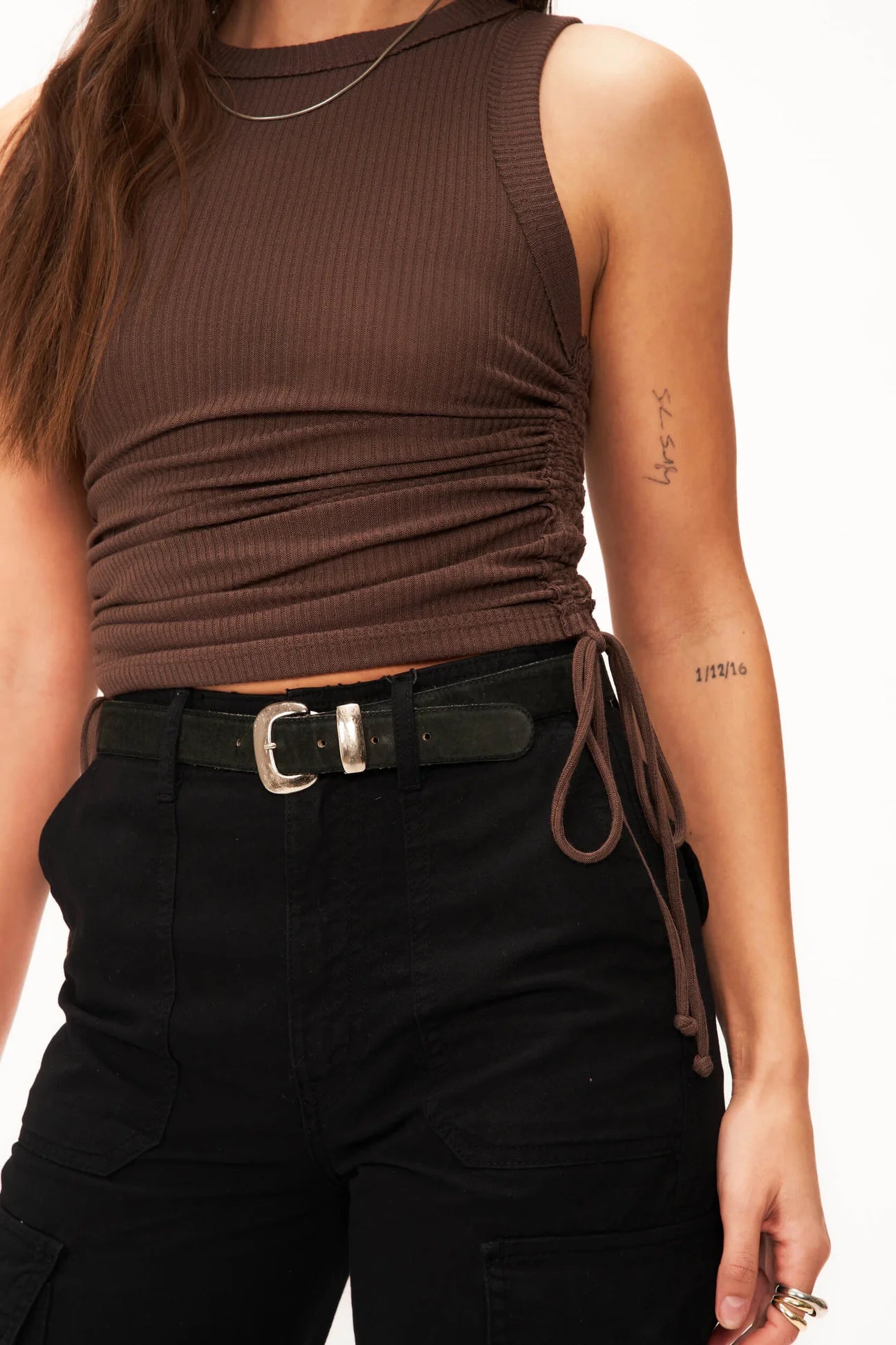 The Take Me Home Fitted Side Ruched Rib Tank is made from a soft rib fabric with adjustable side ties that create a feminine and flattering ruched detail. Add in the high crew neckline, slight shirttail hemline, and fitted silhouette, and you have THE tank for fall. Pair on its own with leather pants and heels for date night, or layer under a blazer for a work-to-happy-hour 'fit.