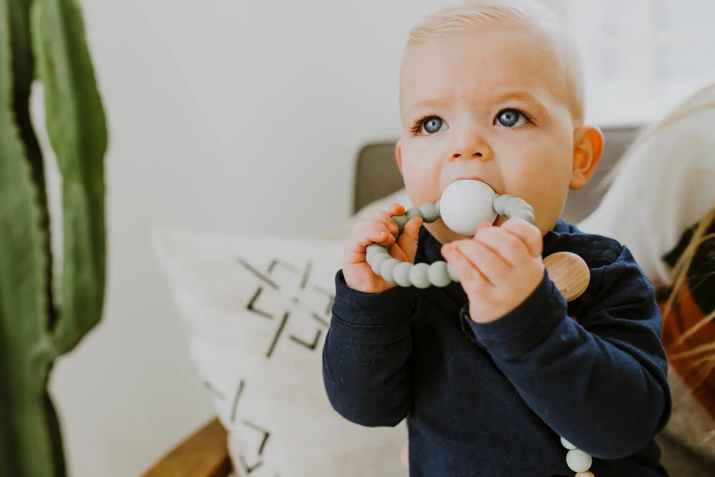 We are a mom owned + operated company that was founded in 2014 in California. Majority of our products are made by moms, and all our employees are parents that have been through the teething trenches themselves. All our products are made with food grade silicone and beech wood and certified to meet USA FDA and Consumer Product Safety Commission Standards. Our style is neutral + simple, from the product design down to our packaging. We hope you feel just as fashionable as you feel practical using our products. Sprouting teeth is a rite of passage and it can be a very stressful period for both baby and parents alike. While there is no magic cure for teething pain and discomfort it's our hope that having some Chewable Charm necklaces and teethers will make the experience a little more pleasant for everyone.