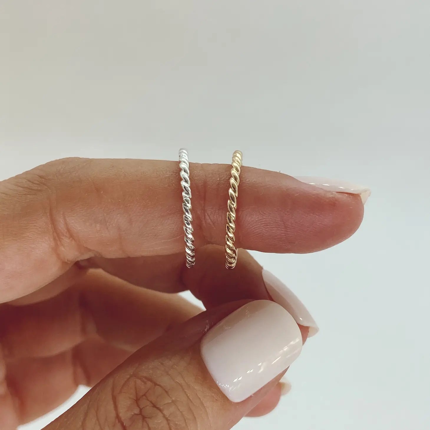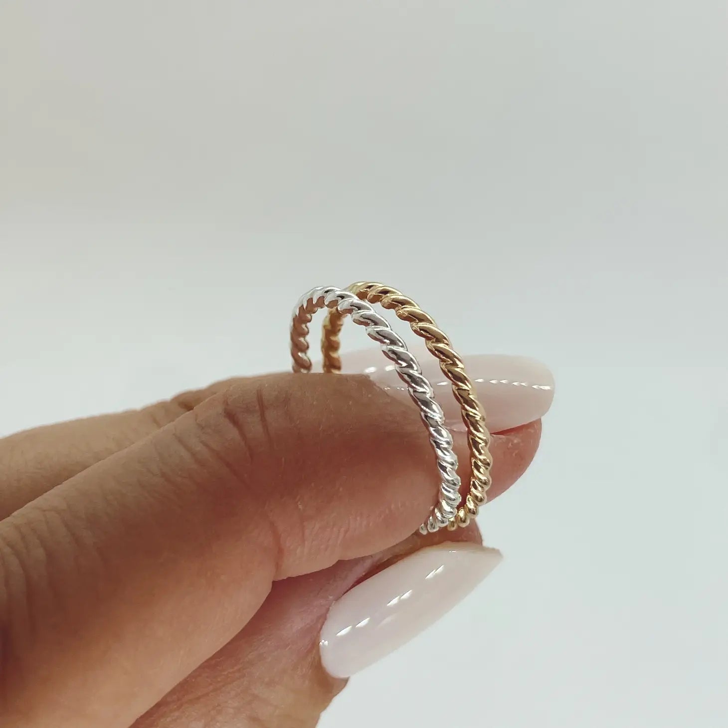 A sophisticated ring with a rope twisted pattern, this piece is unique and minimalist. The rope wire gives an extra shiny effect and can be worn alone or as a stacking ring.