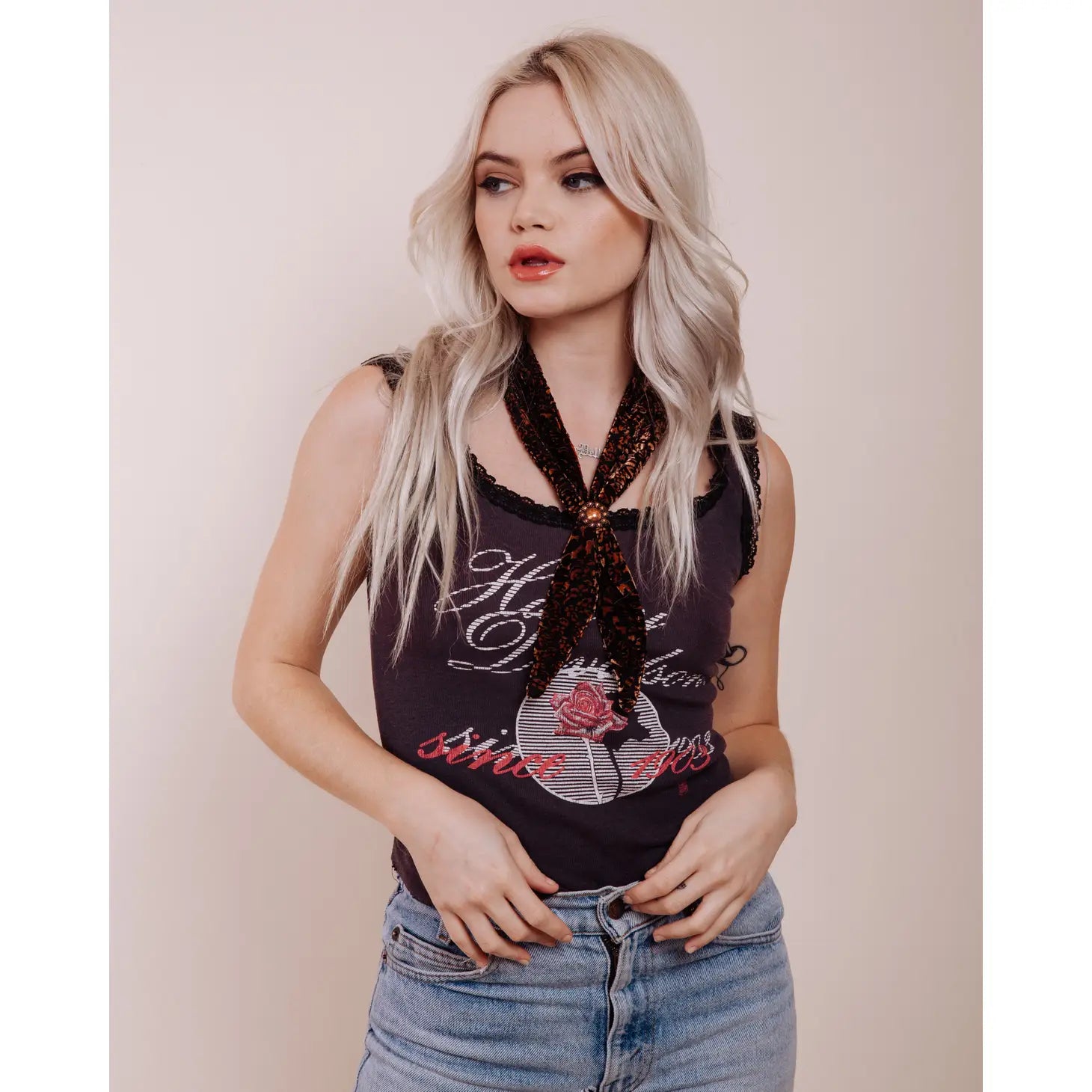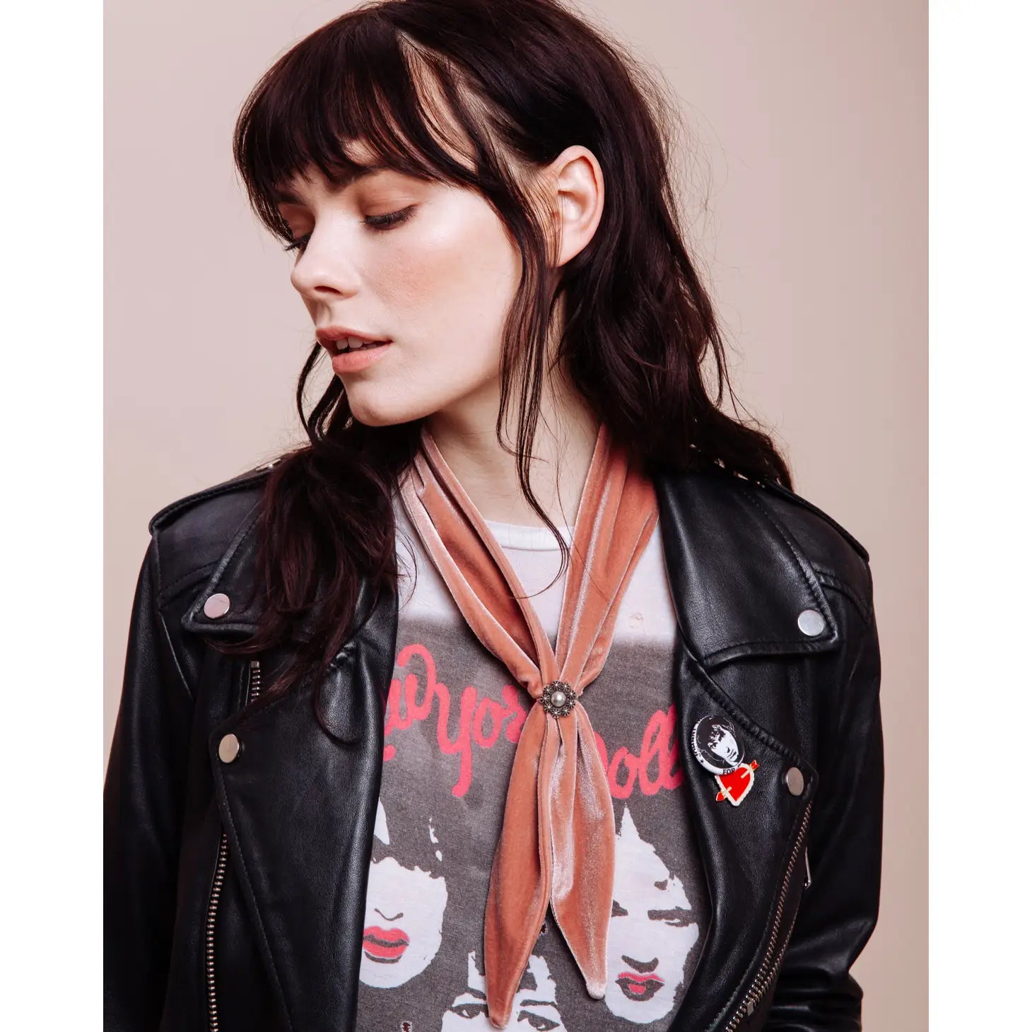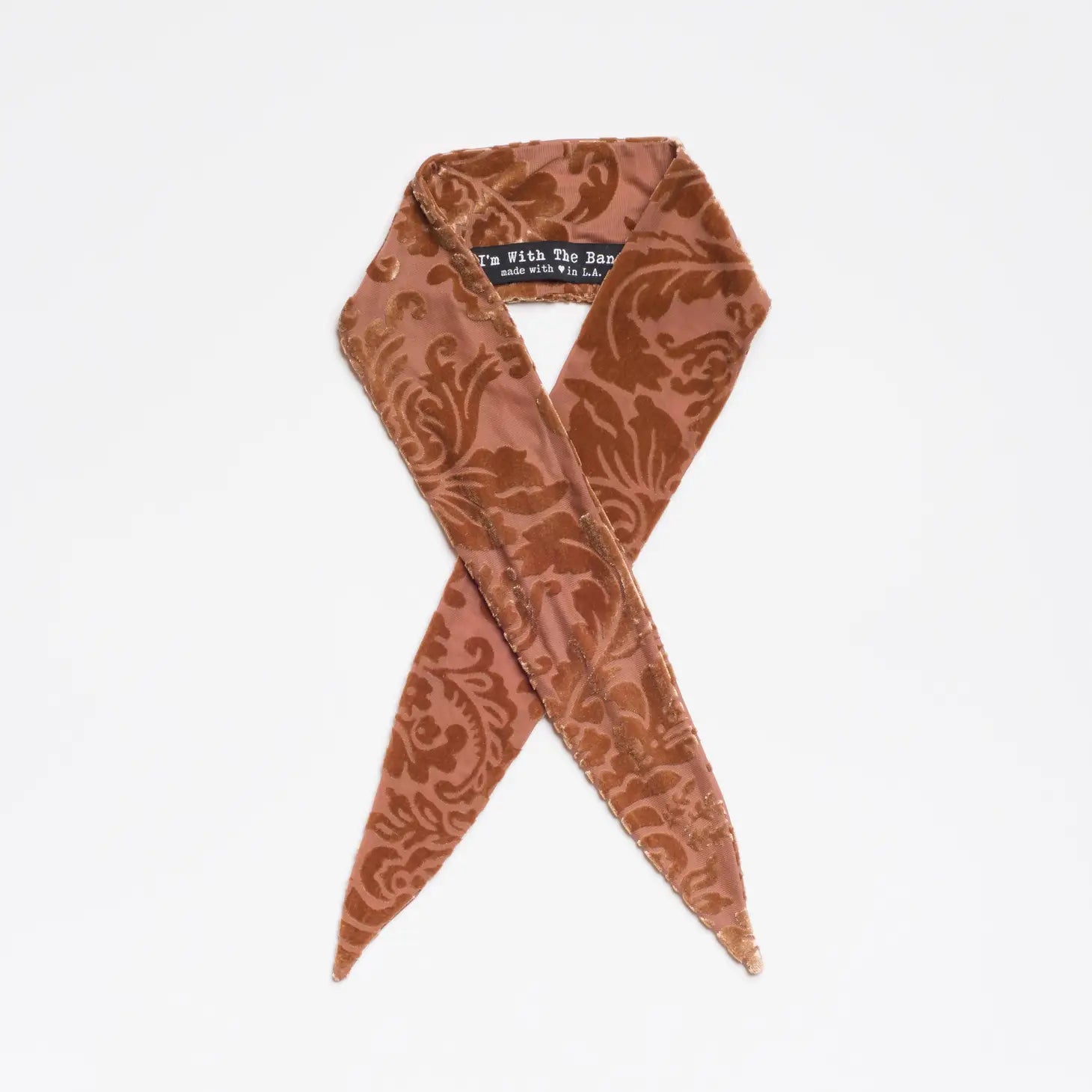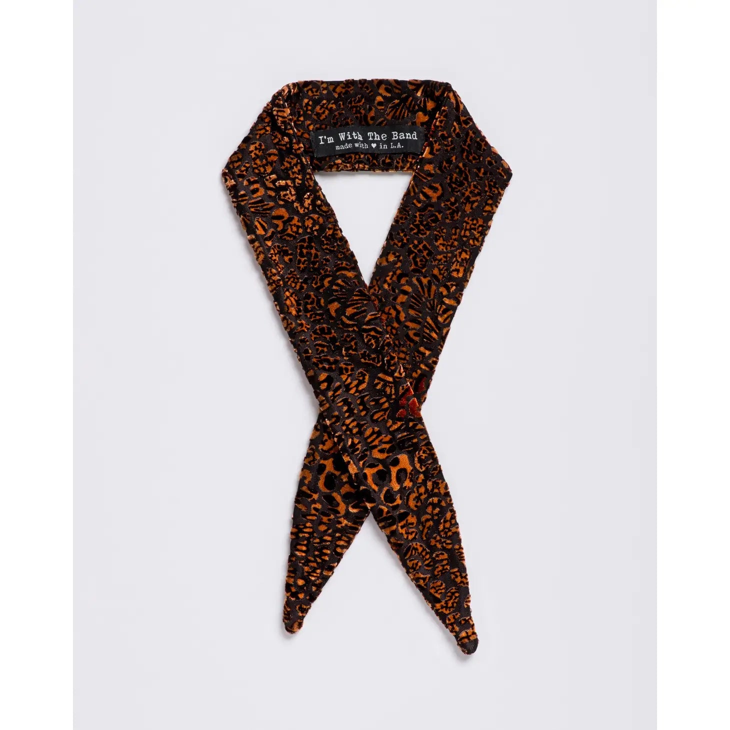 You'll be making all the hearts sing when wearing this winner! Wrap this tie around your neck, head or anywhere else you so desire! These little scarves are the perfect accent to any outfit!    – handmade from stretch burnout velvet – one size – MEASURES APPROX. 33" LONG X 2.5" WIDE WHEN LAID FLAT – made in L.A. with love