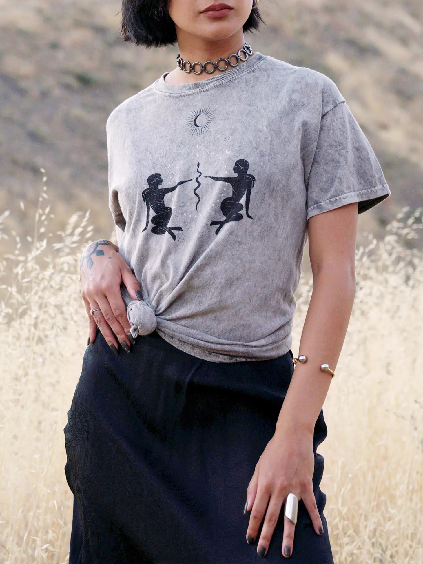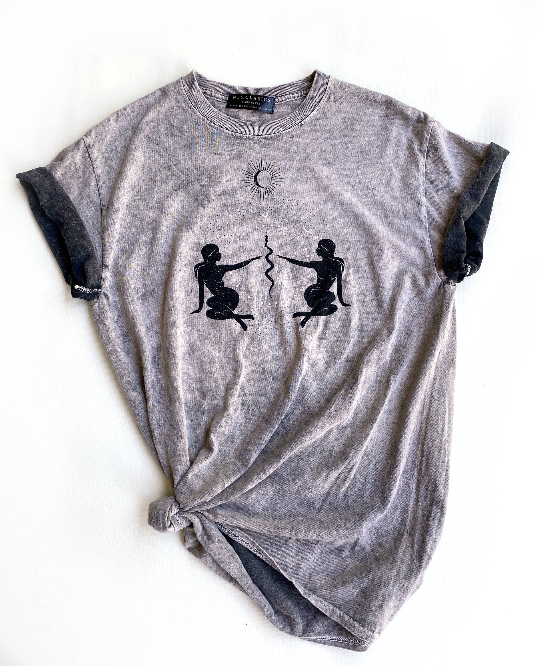 One of our first collaborations with talented artists Alysa Adkins from Denver, CO. Feminine energies uplifting eachother with a celestial scene, printed on a super soft blended tank (Ash color). Unisex fit
