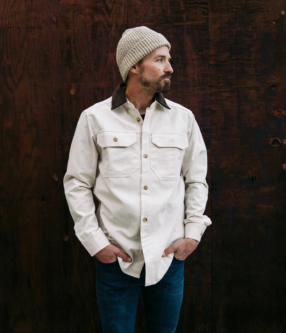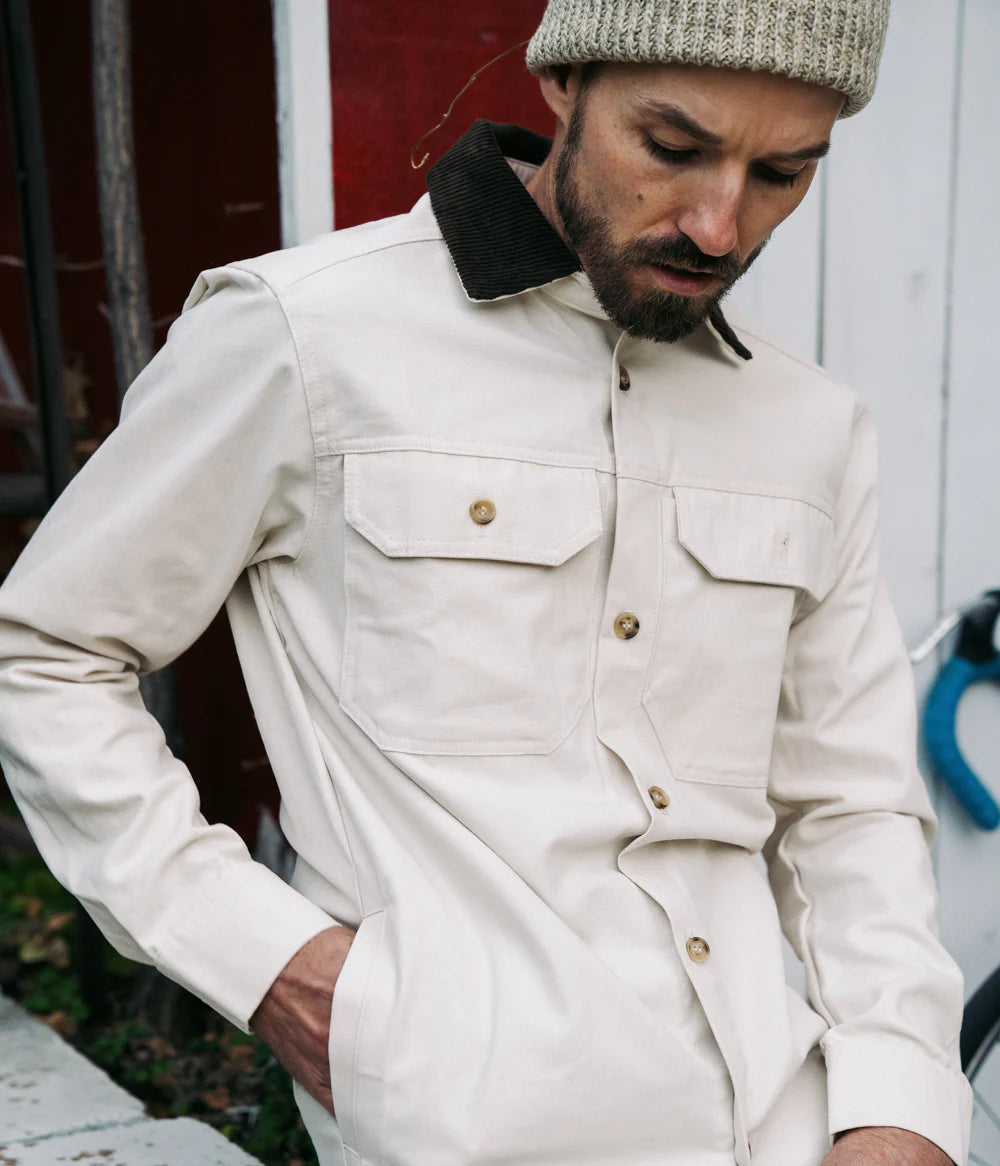 Somewhere between a jacket and a shirt lies the Workshop—a garment crafted from supple cotton canvas that has been brushed for a soft hand, perfectly suited for any task at hand. Featuring side seam pockets, button flap chest pockets (complete with a pencil slot), and adorned with a corduroy collar, the Workshop seamlessly transitions from urban settings to the workshop floor. This versatile piece effortlessly blends style with practicality, whether you're out in town or diving into the nitty-gritty of work.